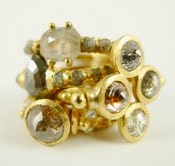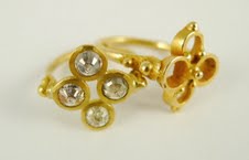 On her website, Polly describes her work this way, “a disregard for the traditional, juxtaposed with a love of the ancient and classical jewellery.”  I think that comes through clearly in her designs.  The words that come to mind for me are “modern artifacts.”  It’s the past reflected in a new way.