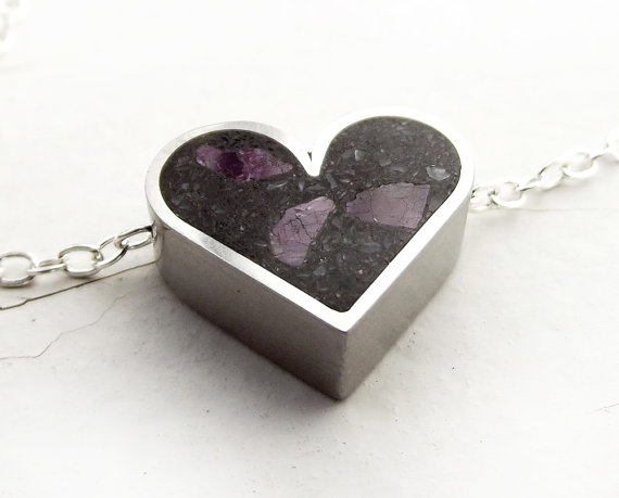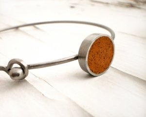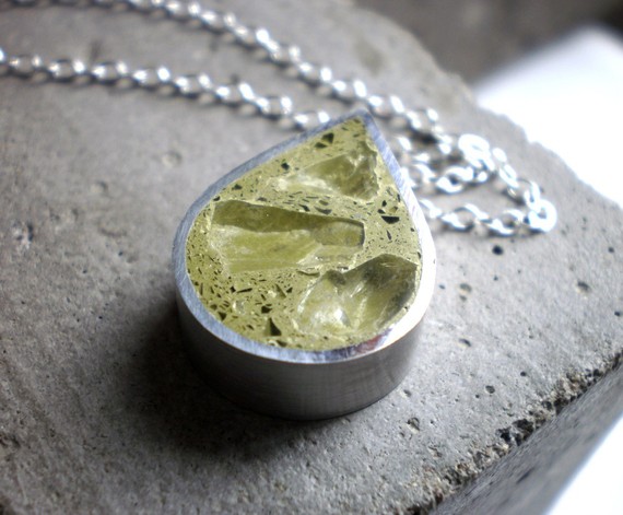DrCraze is doing some amazing things with an unusual jewelry material — concrete.  By filling in his pieces with pigmented concrete, he creates an effect that is somewhere between enamel and mosaic.  The results are clean, colorful designs.