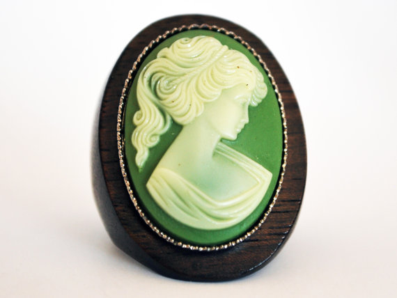 The bold Jessica J. Fein has done just that.  She has a lovely line of vintage inspired chunky, playful jewelry and the modern/cameo mashups are very nice additions to the line.