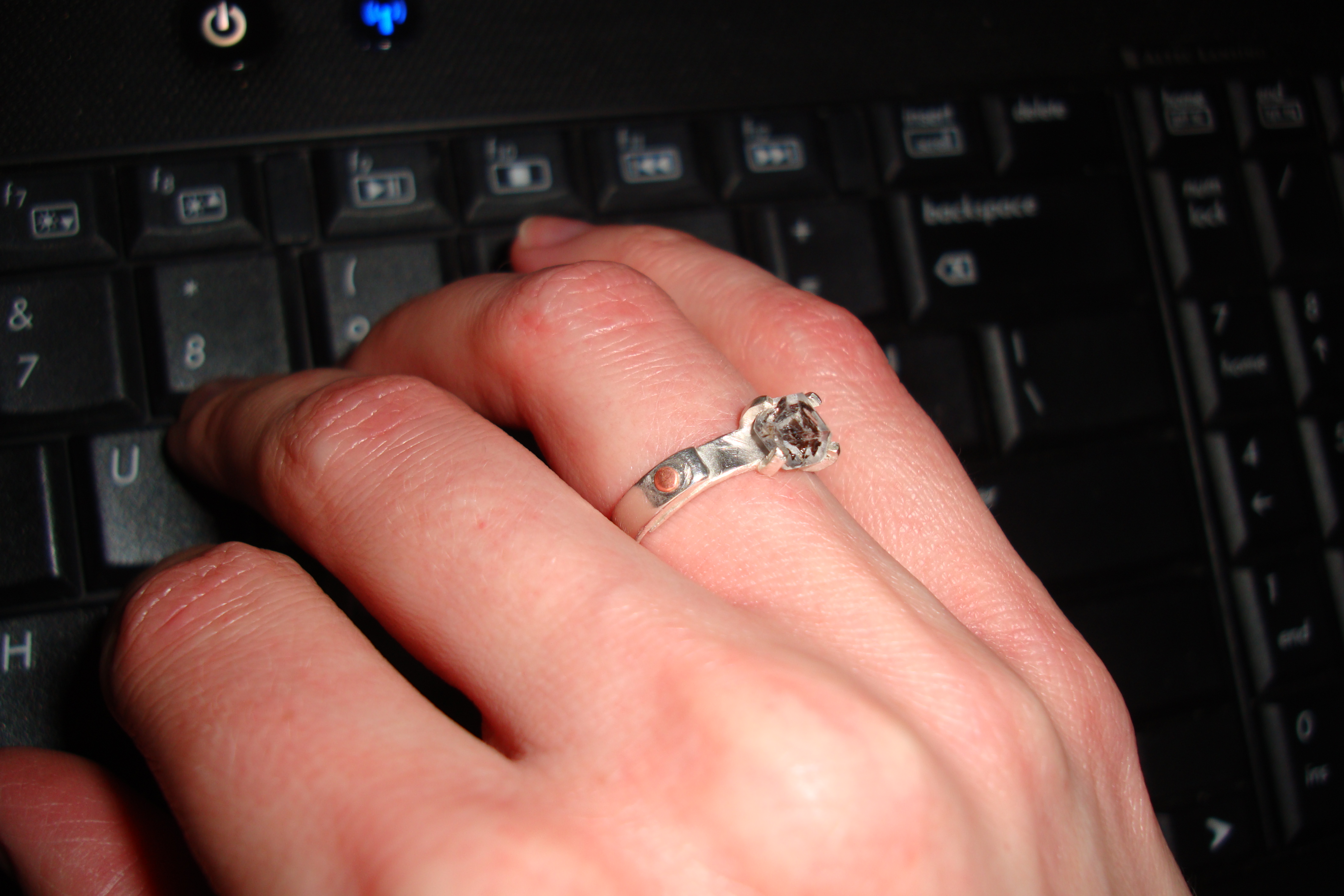 Electroforming, in the simplest terms, is the intricate process of controlling a metal deposit of copper and onto a conductive surface whether it be an organic or inorganic material. This process is similar to plating…but is done over a much longer period of time – and can be anywhere from 2 – 12 hours. Basically a thick “skin” of metal is built up into a rigid surface – which in this case is the ring or pendant form. Various patinas and finishes are possible after the initial electroforming process is complete.